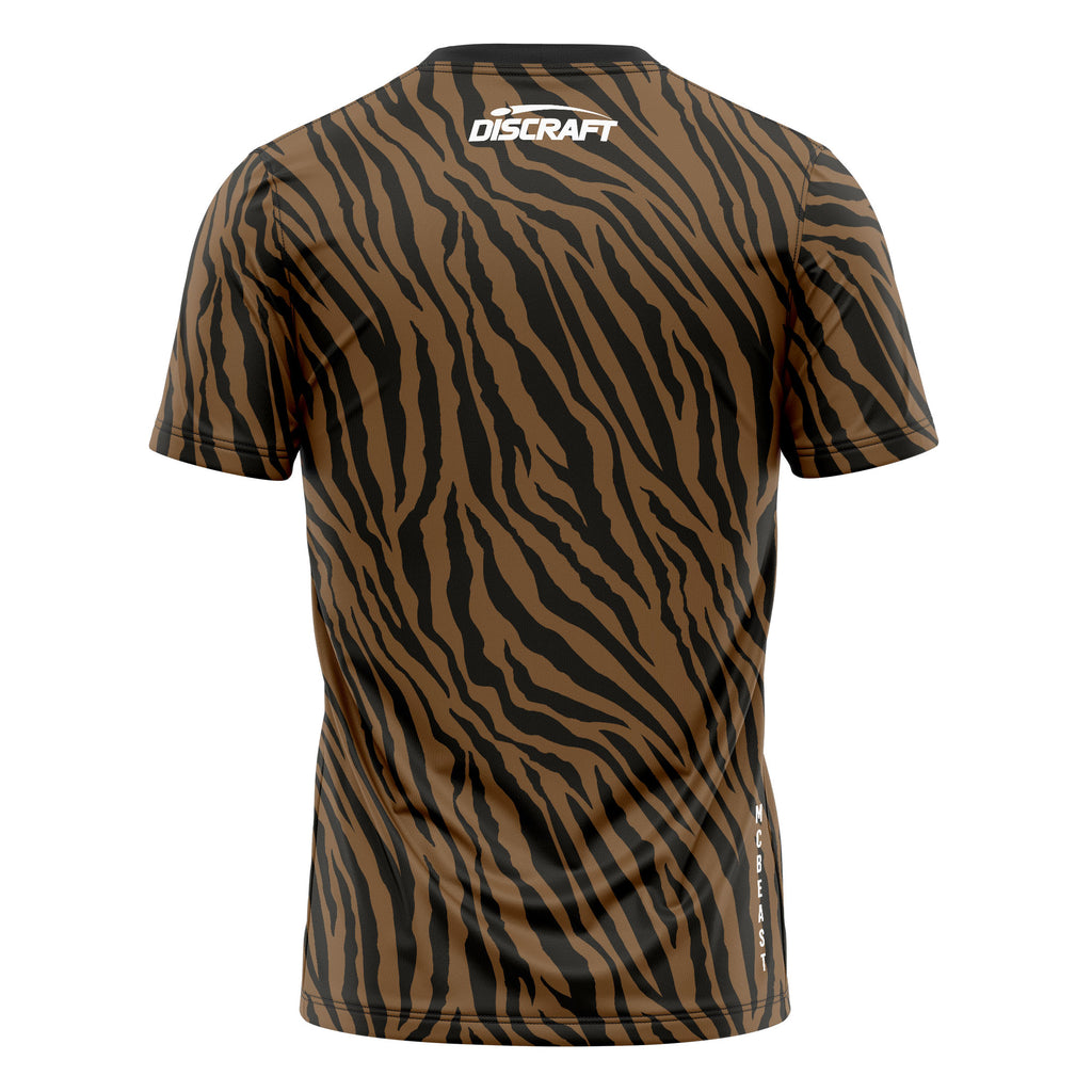 Unleash your inner champion with the Paul McBeth McBeast Mode Jersey — a bold tribute to one of disc golf’s most dominant players. Featuring McBeth’s iconic logo front and center and the Discraft logo on the back, this jersey embodies confidence, focus, and intensity. Available in two fierce designs — Blue Tiger and Brown Beast — each jersey captures the energy and power that define McBeth’s game. Crafted by 1st Phorm from premium performance pinhole mesh, the McBeast Mode Jersey delivers lightweight breathability, moisture-wicking comfort, and full-range mobility for every throw. Fully sublimated for lasting color and durability, it’s built for players who bring the heat on the course — and look good doing it.