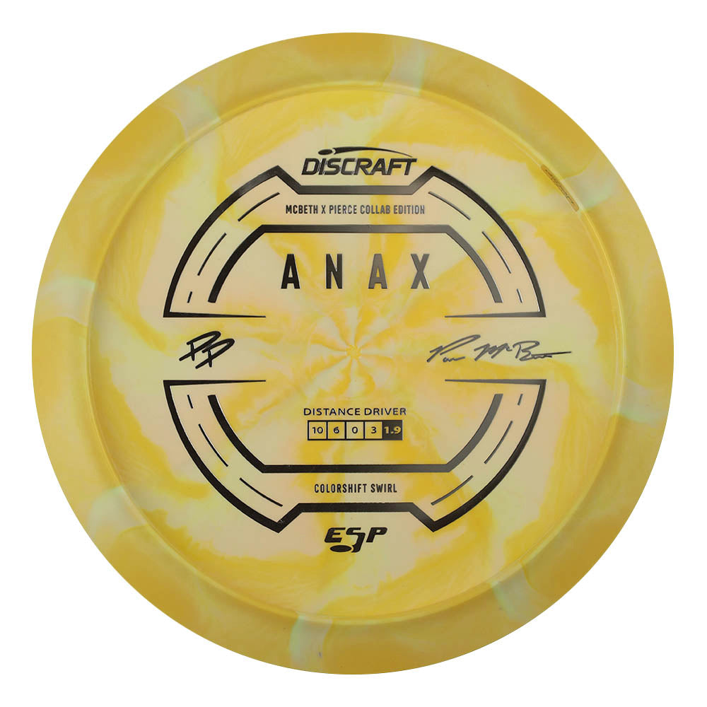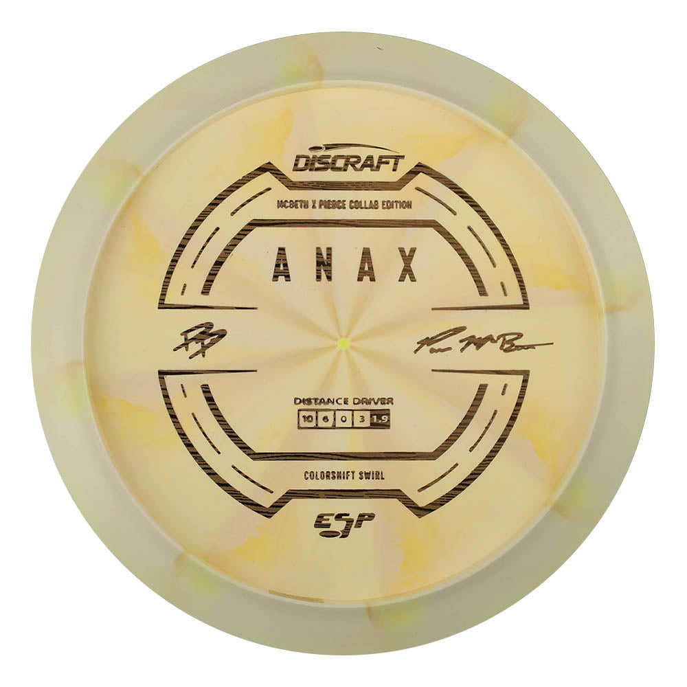 The Anax has become as staple in the Discraft production disc lineup thanks to its incredible glide and stability. The 10-speed designation lands the Anax squarely in the hybrid driver catagory, between distance and fairway. This allows for the Anax to be an ideal choice in many different situations on the course.