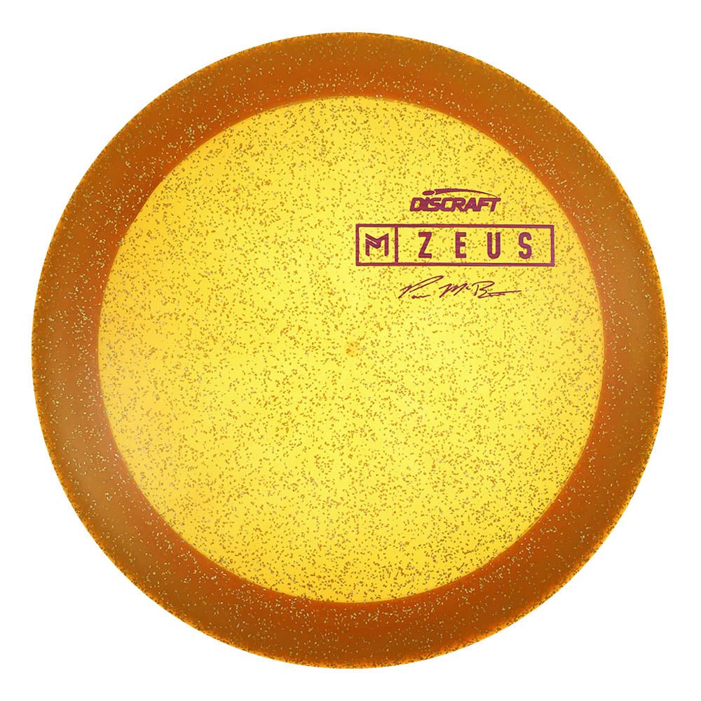 The Zeus, Paul McBeth’s first distance driver in his lineup, is a powerfully overstable driver meant for full power distance drives for advanced players. The Zeus is a maximum distance, 12 speed driver that is overstable for both forehand or backhand throws, This run of the Zeus was in Z Sparkle plastic with a variety of colors and weights.