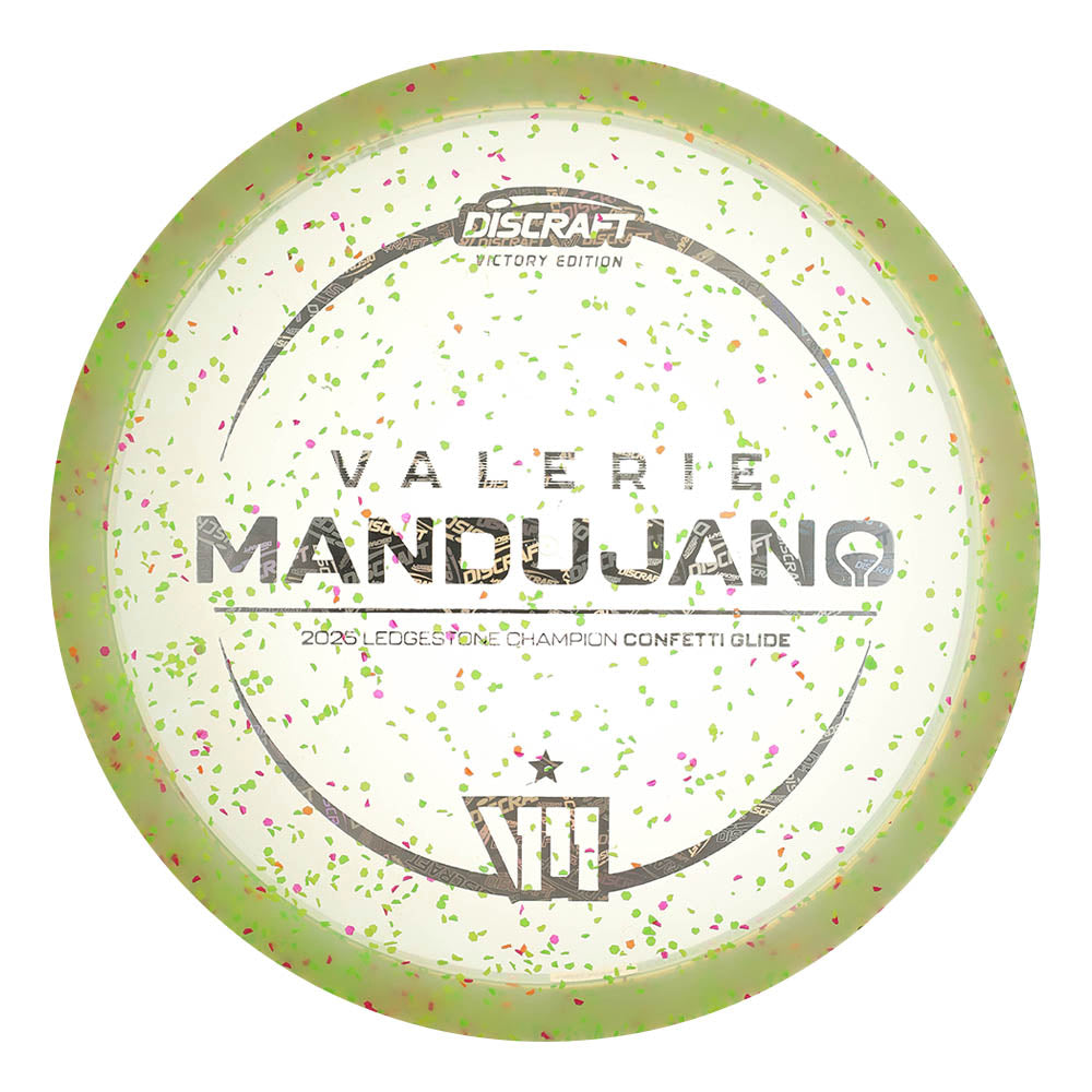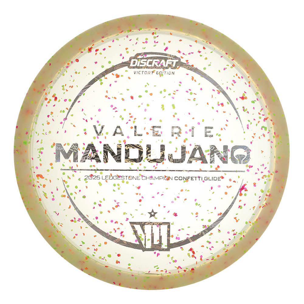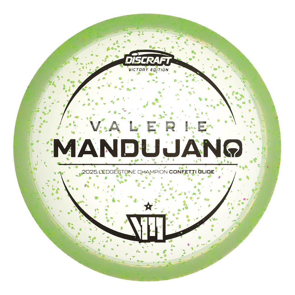 This Victory Edition Confetti Glide commemorates Valerie Mandujano's brilliant win at this year's Ledgestone Open, one of Discraft's flagship events. Despite finding herself in a playoff against the reigning world champion, Val remained resilient and captured an incredible victory!